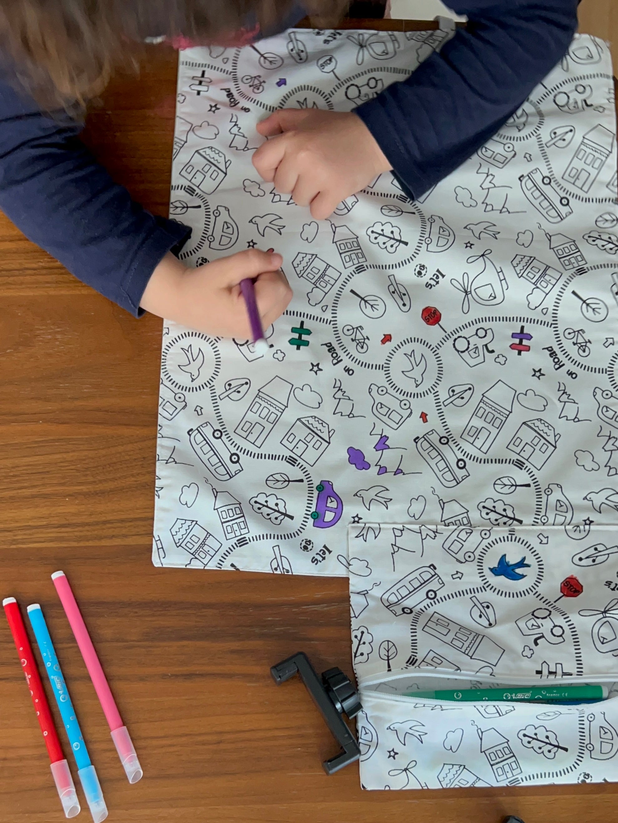 "Carmakid tablecloths turned café time into calmer, creative time: my kids stay happily drawing and screens stay in my bag”